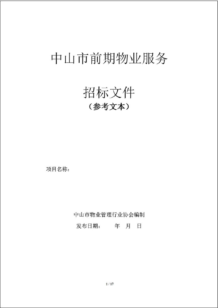 中山市前期物业服务招标流程文件