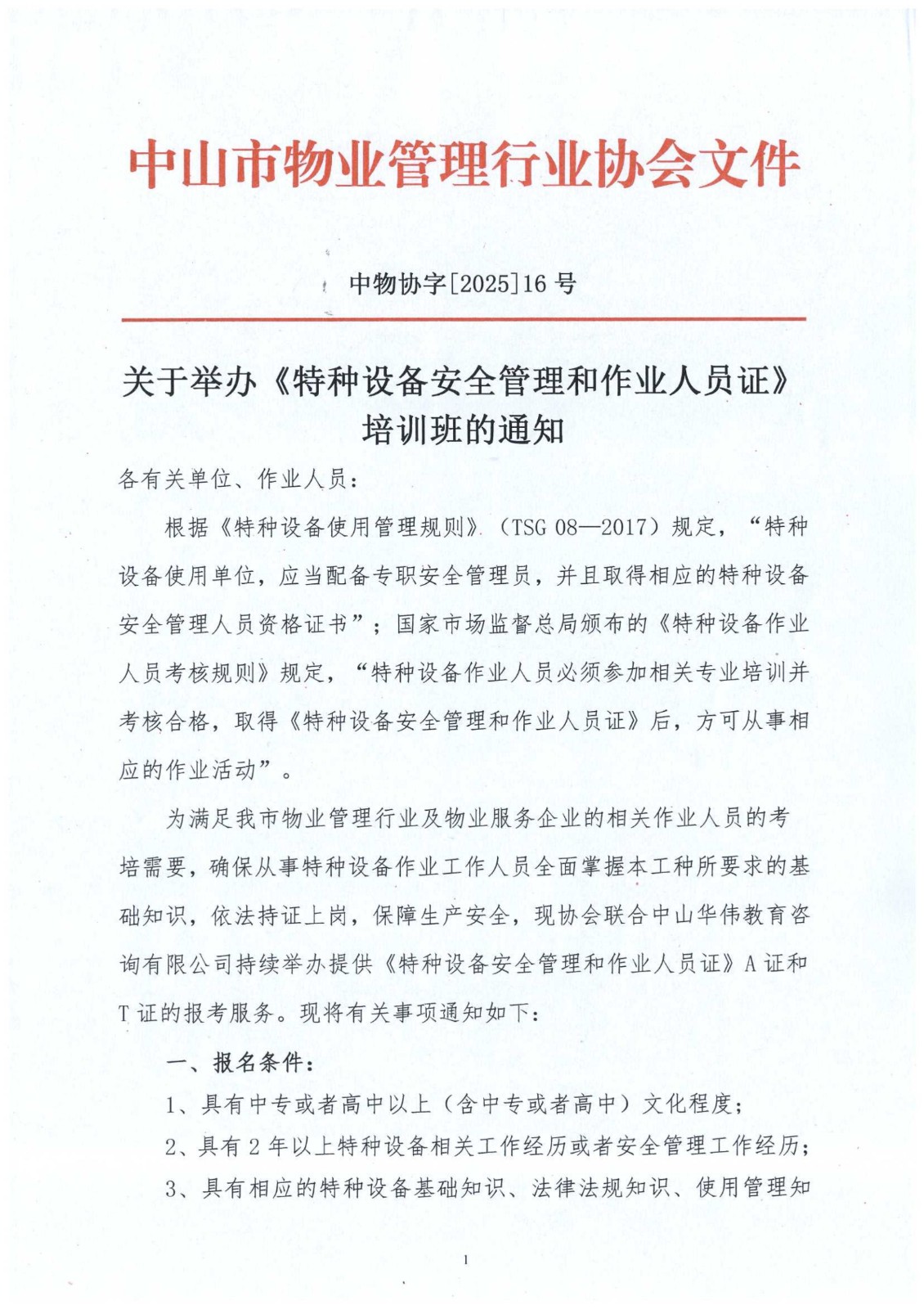 关于举办《特种设备安全管理和作业人员证》培训班的通知