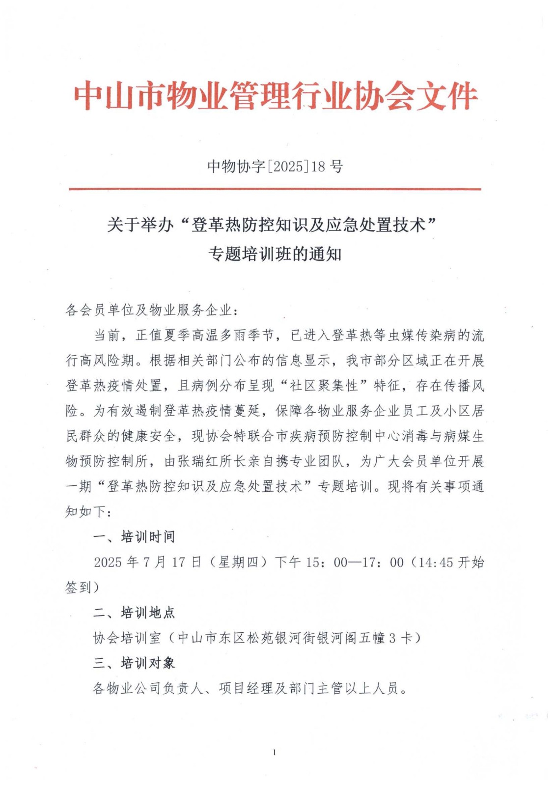 关于举办“登革热防控知识及应急处置技术”专题培训班的通知